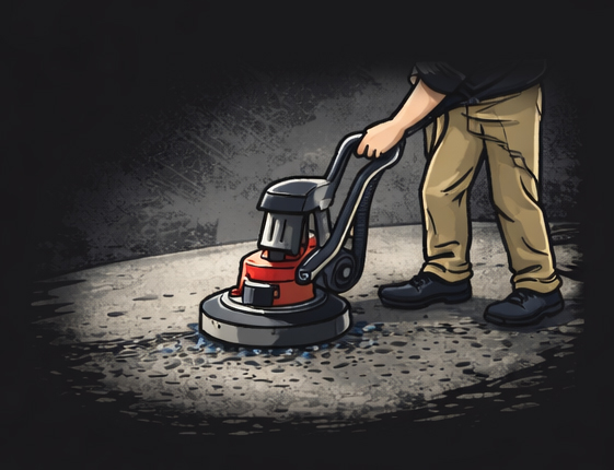 We grind the concrete to remove contaminants and create a rough surface for optimal coating adhesion.